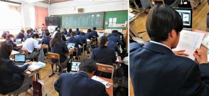 2年3組の国語の授業では、新聞の構成を学習することを目的に、過日行った校外学習で訪れた場所を一つは入れるという条件のもと、嘉楽中学校区や京都のことについてあまり知らない大人に対して紹介する新聞づくりをしました。