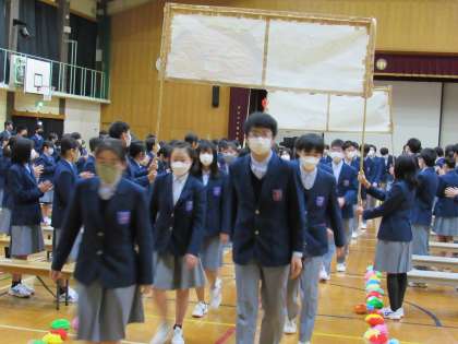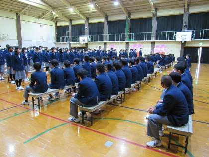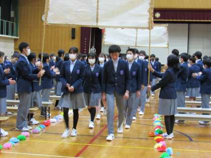 最後に、1、2年生から3年生に対して感謝と祝辞が伝えられ、続いて3年生の退場で幕が下りました。