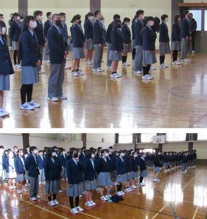 体育館は、初めての全校生徒による歌声に溢れ、感動的な集会となりました。