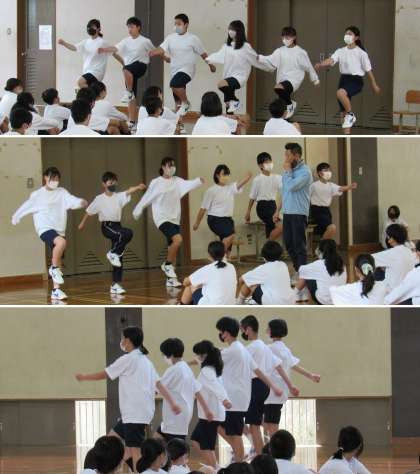 1年3組の保健体育科の授業では、集団行動の内、行進の練習をしました。