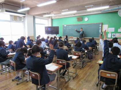1年2組の英語科の授業では、”can”を使って、できることを尋ねたり、伝えたりする会話練習をしました。