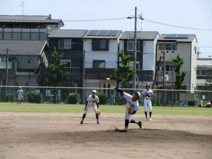 吉祥院グラウンドが会場でした。グラウンドが広く、特に悪送球等で後逸すると、大量得点につながるので、注意が必要です。バッテリーは暑い中、がんばってゲームをすすめていました。外野フェンスを越える2塁打も出たり、要所でゲッツーもとったりして奮闘していました。
