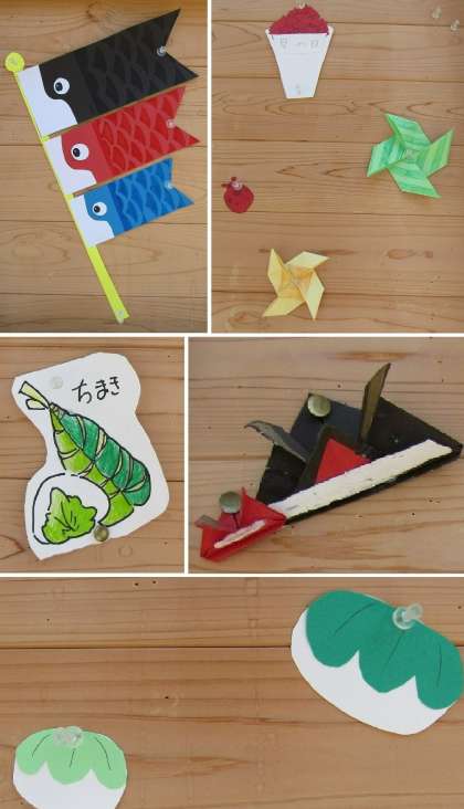 掲示板飾りは,「こどもの日」と「母の日」に因んだもので,「チマキ」「柏餅」「鯉のぼり」「兜」、そして「カーネーションの花束」などで,そのかわいらしさに,心が和みます。(^_^)v