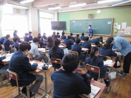 1年2組の数学科の授業では、「正の数」「負の数」の乗法について演習問題を解きながら学びました。