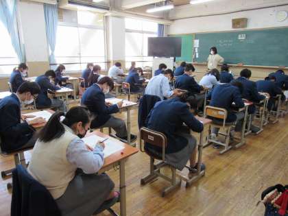 11日(木)、1限目の3年生の確認プログラムテスト受験風景