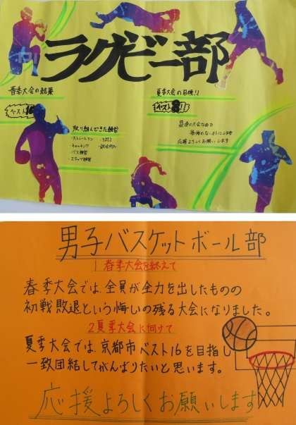 春季大会が終わり,また新たな目標に向かって始動すべく,各部活動のポスターを新調し,校門横の掲示板に掲示したのでご紹介します。