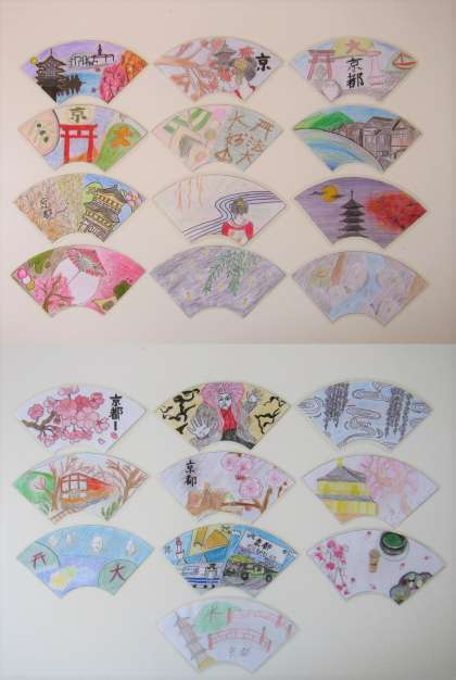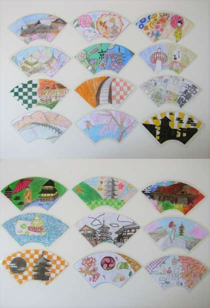 四季をヒントに「京都」を発想し、琳派から和の文様と組合せ、修学旅行先の民泊でお世話になる方々を思いながら美術科の時間を利用して制作に取り組みました。