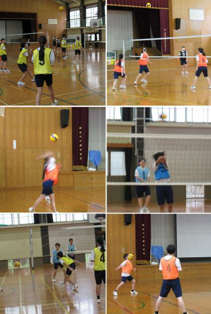 3年3組の保健体育科の授業では、守備面に工夫しながらバレーボールのゲームをしました。