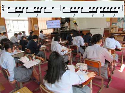3年2組の音楽科の授業では、「モーリス・ラヴェル作曲、バレエ曲“ボレロ“」の楽曲構成を学んだ後、それぞれの楽器の音色を味わいながら鑑賞しました。