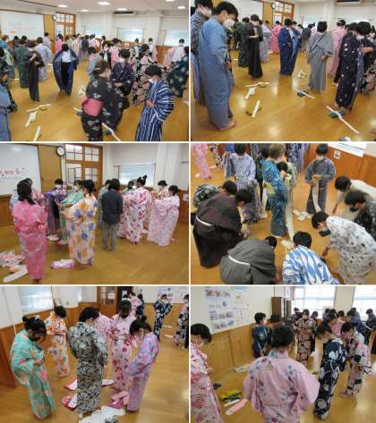 女子でも浴衣を着るのが初めての生徒も多く、ましてや男子生徒はほとんど着たことがないようで、苦戦しながらも賑やかに和装を楽しんでいました。
