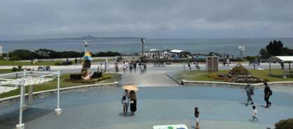 天気が非常によく、向う側にある伊江島がはっきり見えます。