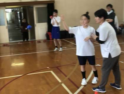 育成学級球技大会合同練習の様子