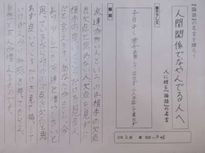 3年生の国語の単元「論語」について、各自で選んだ名言を