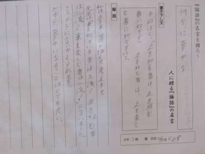 3年生の国語の単元「論語」について、各自で選んだ名言を