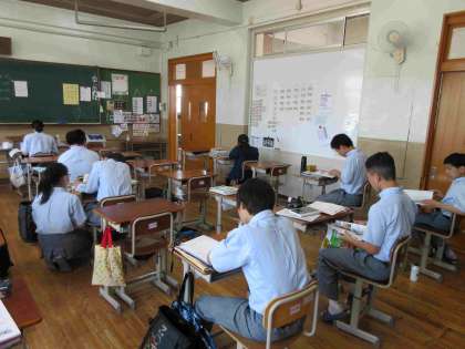 本校は定期考査前に「土曜学習会」を行っています。家では集中できないなーと思う人、午前中からエンジンかけて勉強に取り組もうと思う人には、とてもよい場だと思います。