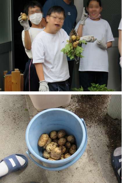 1組の3限目の生活科の授業では、栽培していたジャガイモの収穫をしました。