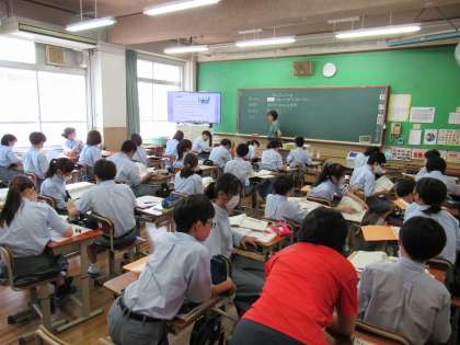 1年3組の英語科の授業では、ニュージーランドの生活習慣の中で、時間を尋ねたり、「モーニングティ」というものがどのような物かということについて読み取ったりました。