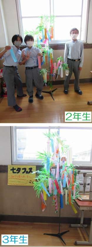 みんなが五色の短冊に思い思いに願いを込め、各フロアに飾り付けました。