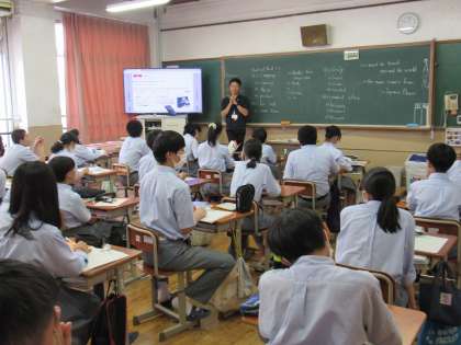 2年3組の英語科の授業では、職業体験で働くうえで、大切にしていることをインタビューしている内容を聞き取る練習をしました。