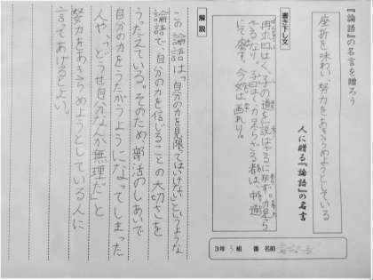 3年生の国語の単元「論語」について、各自で選んだ名言を