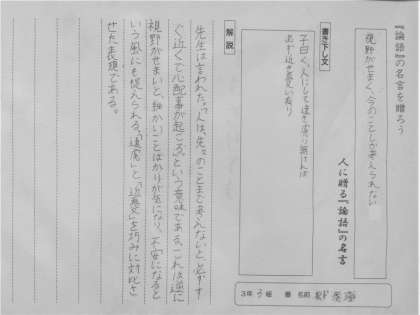 3年生の国語の単元「論語」について、各自で選んだ名言を