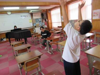 1組の音楽科の授業では、それぞれ学年合唱曲の歌唱練習をしました。
