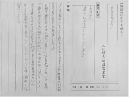 3年生の国語の単元「論語」について、各自で選んだ名言を