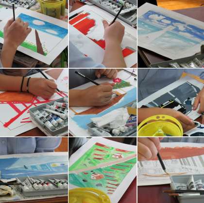 3年2組の美術科の授業では、前回の続きで、「旅する私」というテーマで一点透視による平面作品を制作しました。
