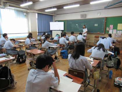 3年3組の保健体育科の授業では、「廃棄物の衛生的管理」というテーマで、ゴミの分別の徹底と、減量への取り組みについて学びました。