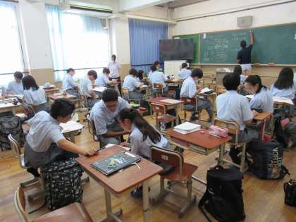 3年4組の数学科の授業では、定期テストに向けて、テスト範囲の復習をしました。