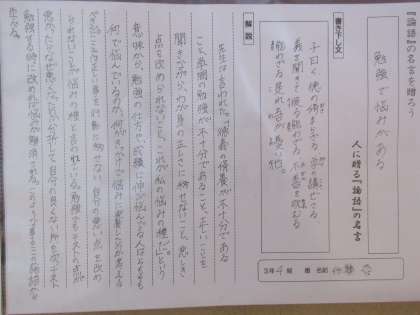 3年生の国語の単元「論語」について、各自で選んだ名言を