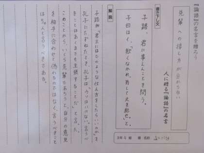 3年生の国語の単元「論語」について、各自で選んだ名言を