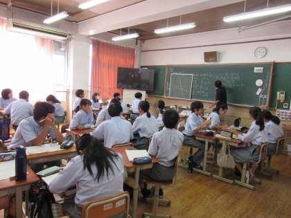 2年3組の数学科の授業では、二直線の交点の座標を求める方法を学習しました。