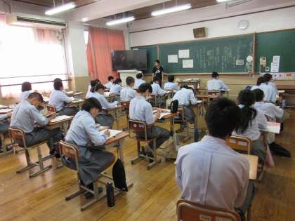 2年3組の国語科の授業では、向田邦子作、随筆「字のない葉書」について文章を比較し、構成や表現の意図を解釈しました。