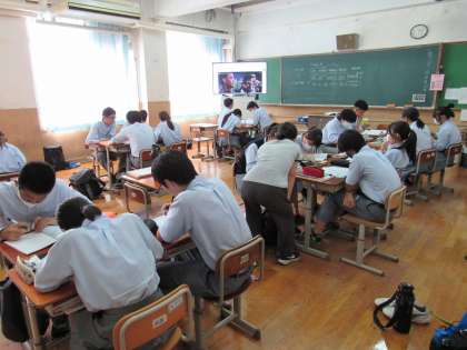 3年2組の英語科の授業では、現在分詞と過去分詞の学習をしました。