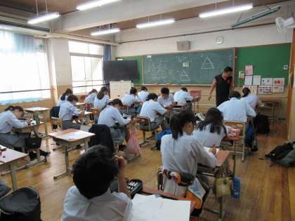 3年3組の数学科の授業では、三角形の相似証明について学びました。