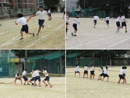 3年4組の保健体育科の授業では、学校祭体育の部に向けて、リレーや綱引きの練習をしました。