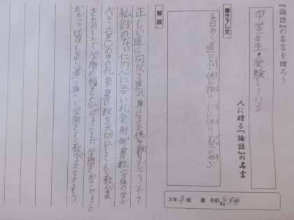 3年生の国語の単元「論語」について、各自で選んだ名言を