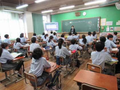 1年3組の英語科の授業では、「Can」を使って、お願いしたり、許可を求めたりする英語表現を学びました。