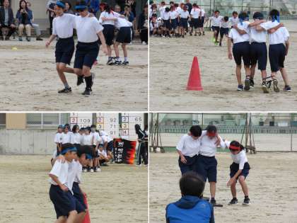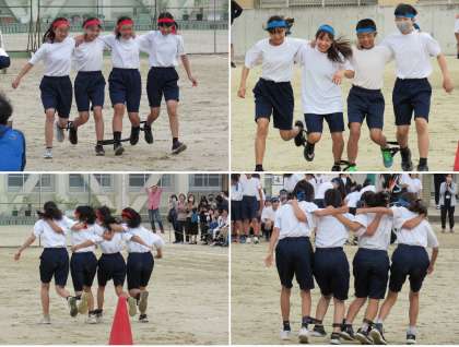 途中、繋いだ縄がほどけたり、足が合わなくなったりで、みんな苦労していました。