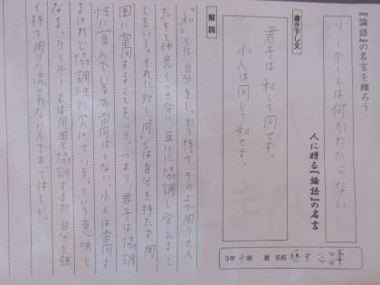3年生の国語の単元「論語」について、各自で選んだ名言を
