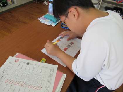 1組の国語科の授業では、漢字書取りや文章問題など、各自がそれぞれの課題に取り組みました。
