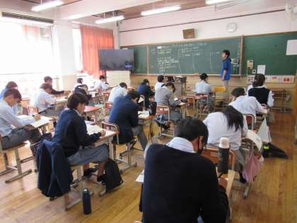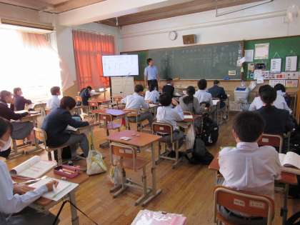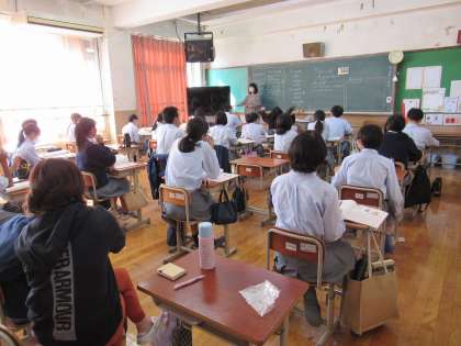2年2組の英語科の授業は、ホームステイ先での困りごとについてのアドバイスを考えました。