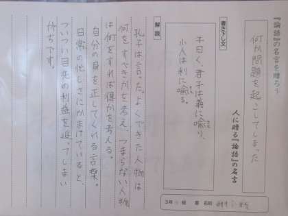 3年生の国語の単元「論語」について、各自で選んだ名言を