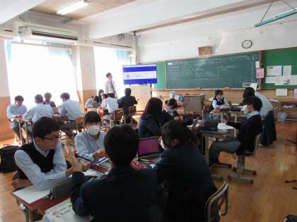 3年3組の国語科の授業では、「テーマが同じ二つの文章を読み比べ、内容を正しく読み取る」というテーマで、人工知能に関する二つの論説文を比較読みした上で、自分の意見を300字でまとめました。