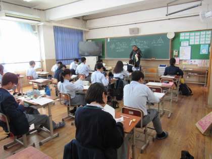 3年4組の数学科の授業では、三角形の重心の求め方を学びました。