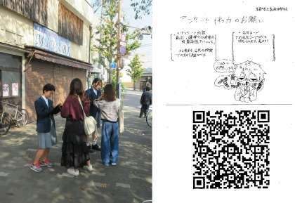 3年4組の社会科の授業では、前回の授業で予想した若者の投票率が低い要因について、今日はフィールドワークでアンケートを行い、予め用意していた質問をしてみました。