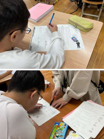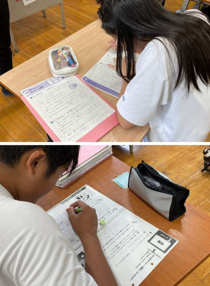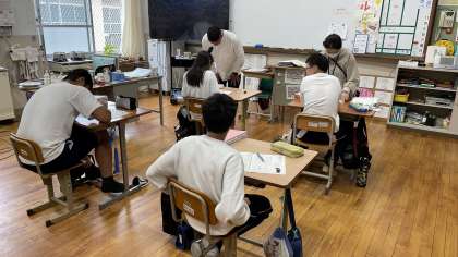 1組の国語科の授業では、基本的な漢字の読みや書取り、表現に関する問題など、各自それぞれの課題に取り組みました。