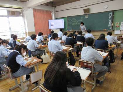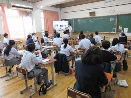 2年2組の英語科の授業では、来日留学生に対して英語により伝える日本の習慣やマナーについて考えました。