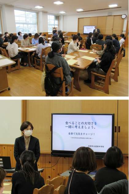 本日(6日)、4・5時間目に来年度の新入生保護者対象に、給食試食会と学校説明会を開催しました。